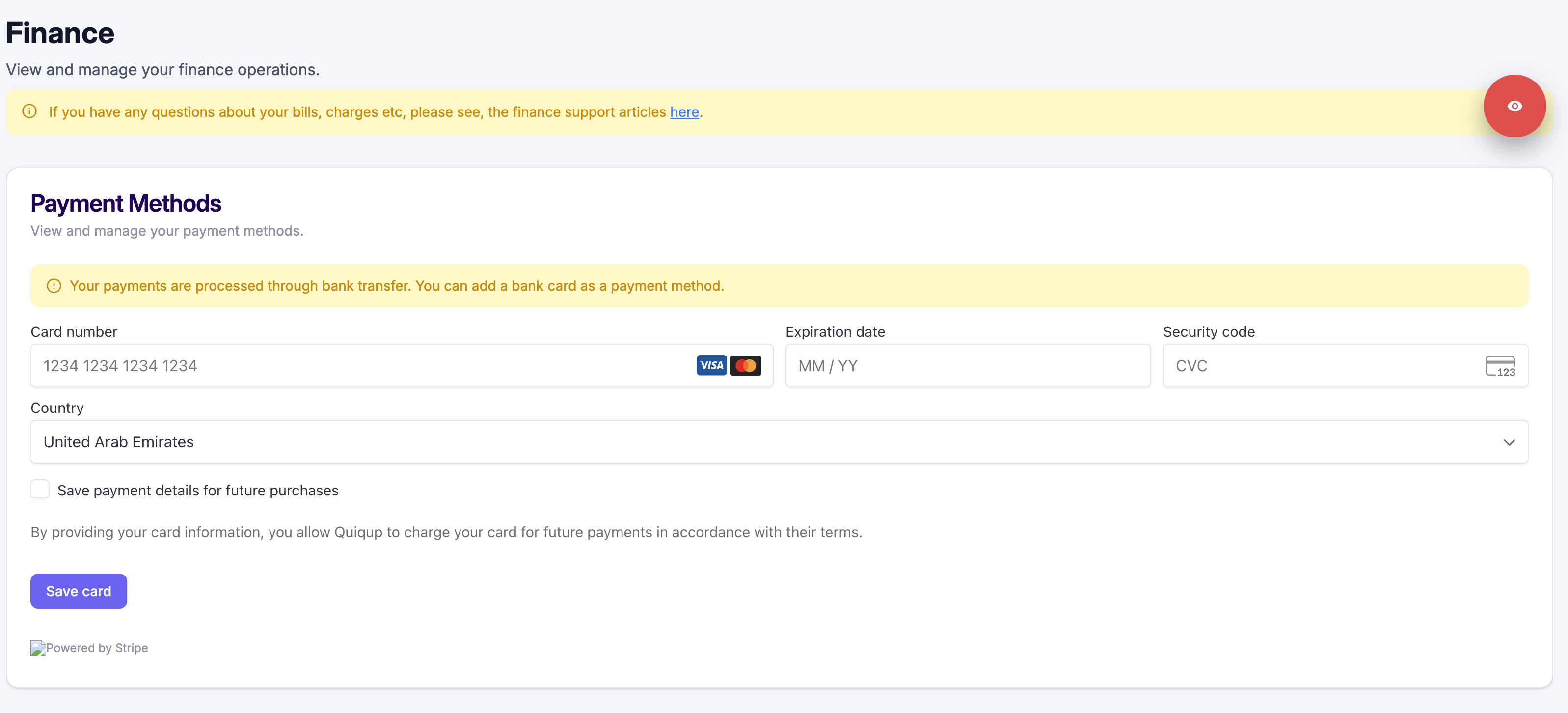 Important: Bank details are used for invoiced clients who don't require immediate card payment processing.