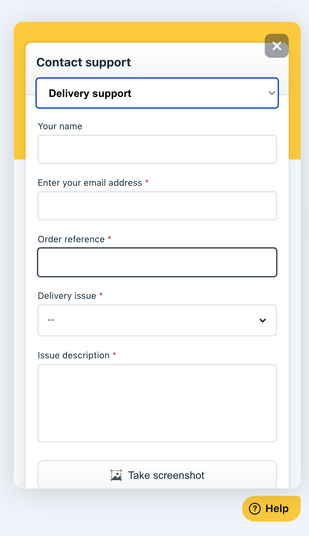 - Access the help button: Click the yellow "Help" button in your Quiqup Dashboard