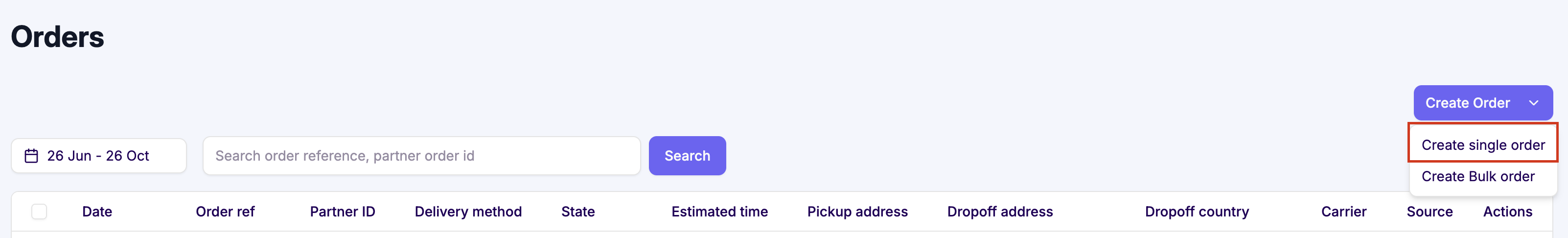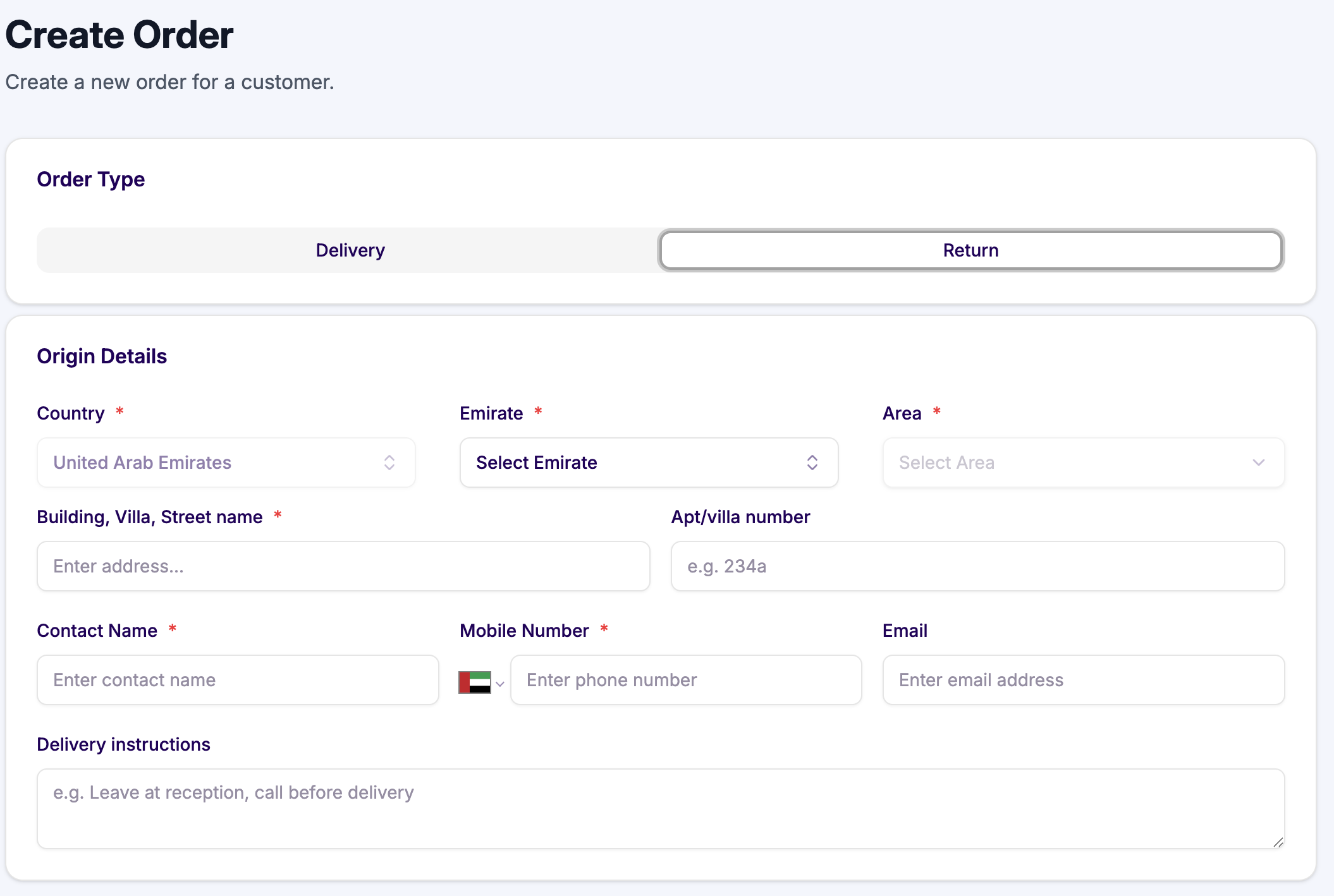 ⚠️ Important for Fulfillment Clients: You cannot use "Create Single Order" for returns. Returns must be created from previously delivered orders only.