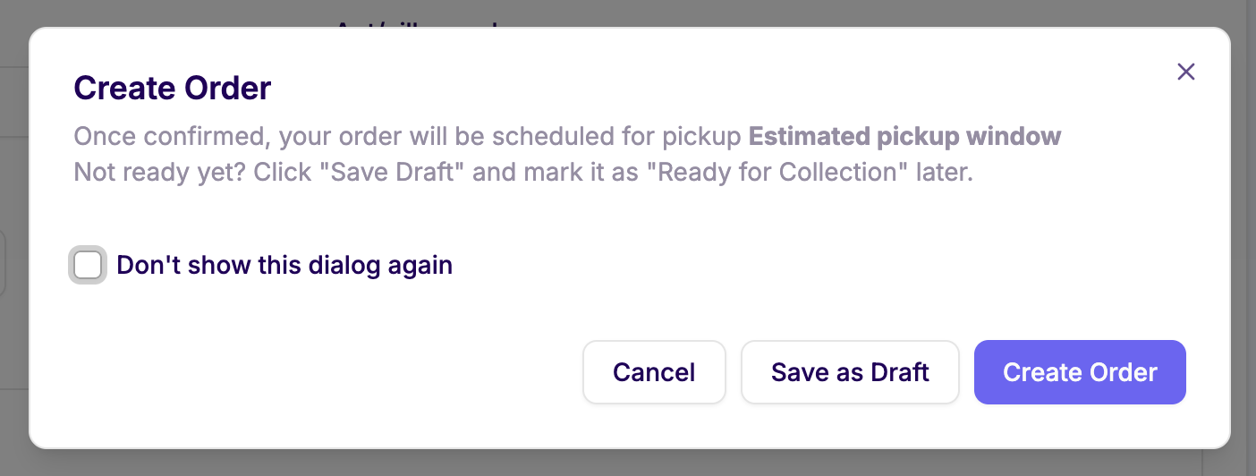 - Create Order:Ensure to mark the order as ready for collection when you want to confirm it.