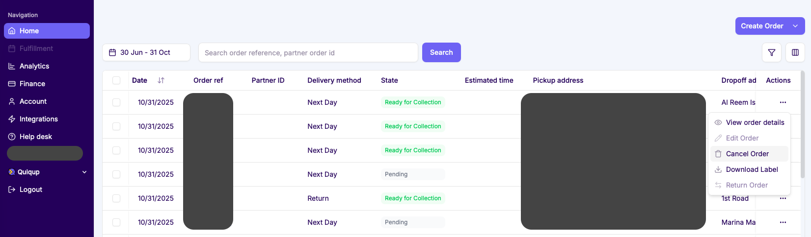 You can only cancel orders in pending state. Once your order moves beyond pending, you'll need to contact our support team for assistance.