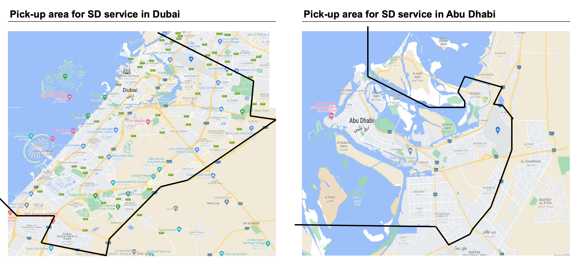 | Fujairah, RAK, UAQ, Al Ain | ✓ | ✗ | ✗ | ✓ |