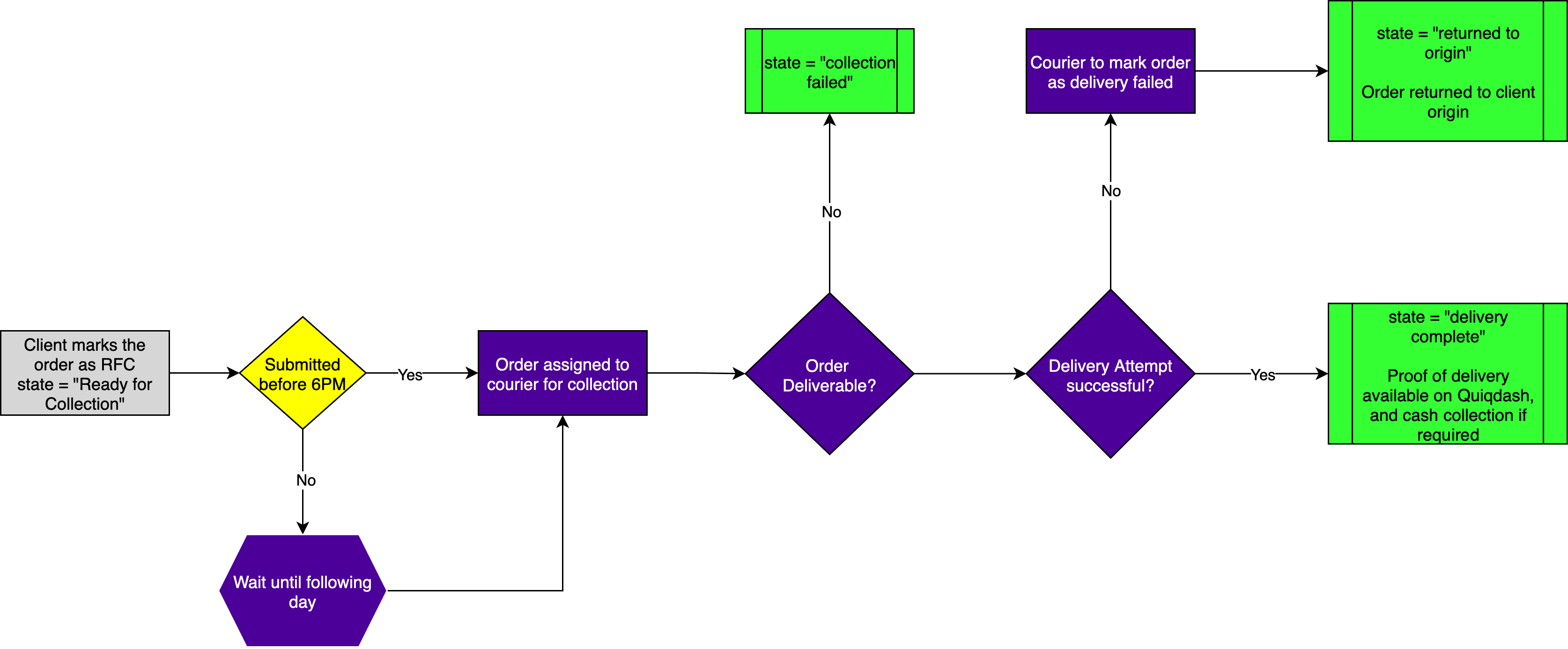 | 3 failed collections | Order cancelled by Quiqup | New booking required |
